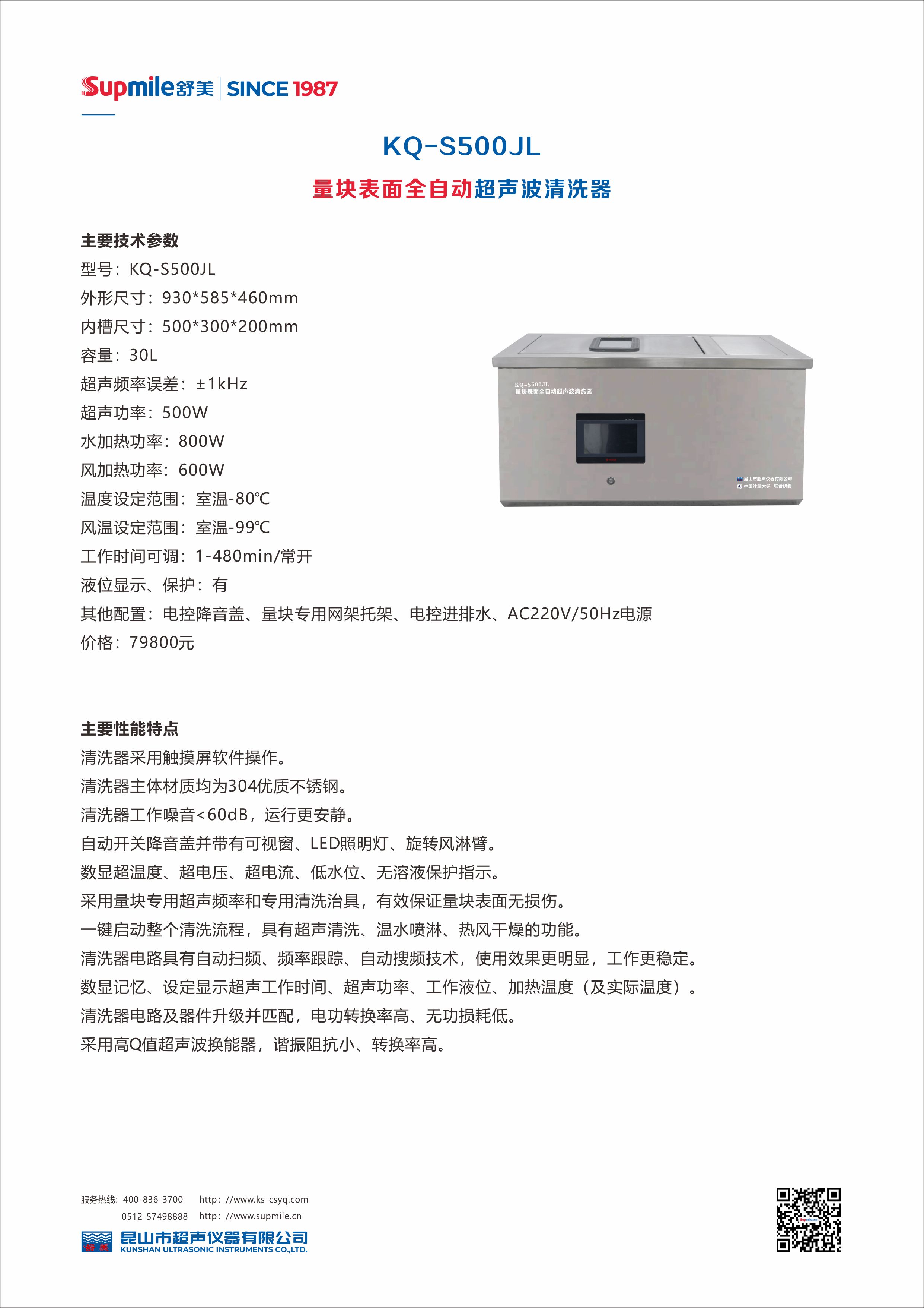 KQ-S500JL型量塊表面全自動超聲波清洗器榮獲“中國儀器儀表學會科學技術進步獎二等獎”,擁有數項技術專利、產品專利,填補了量塊清洗行業使用超聲清洗的空白,是量塊清洗行業的新理念、新方法、新起點!