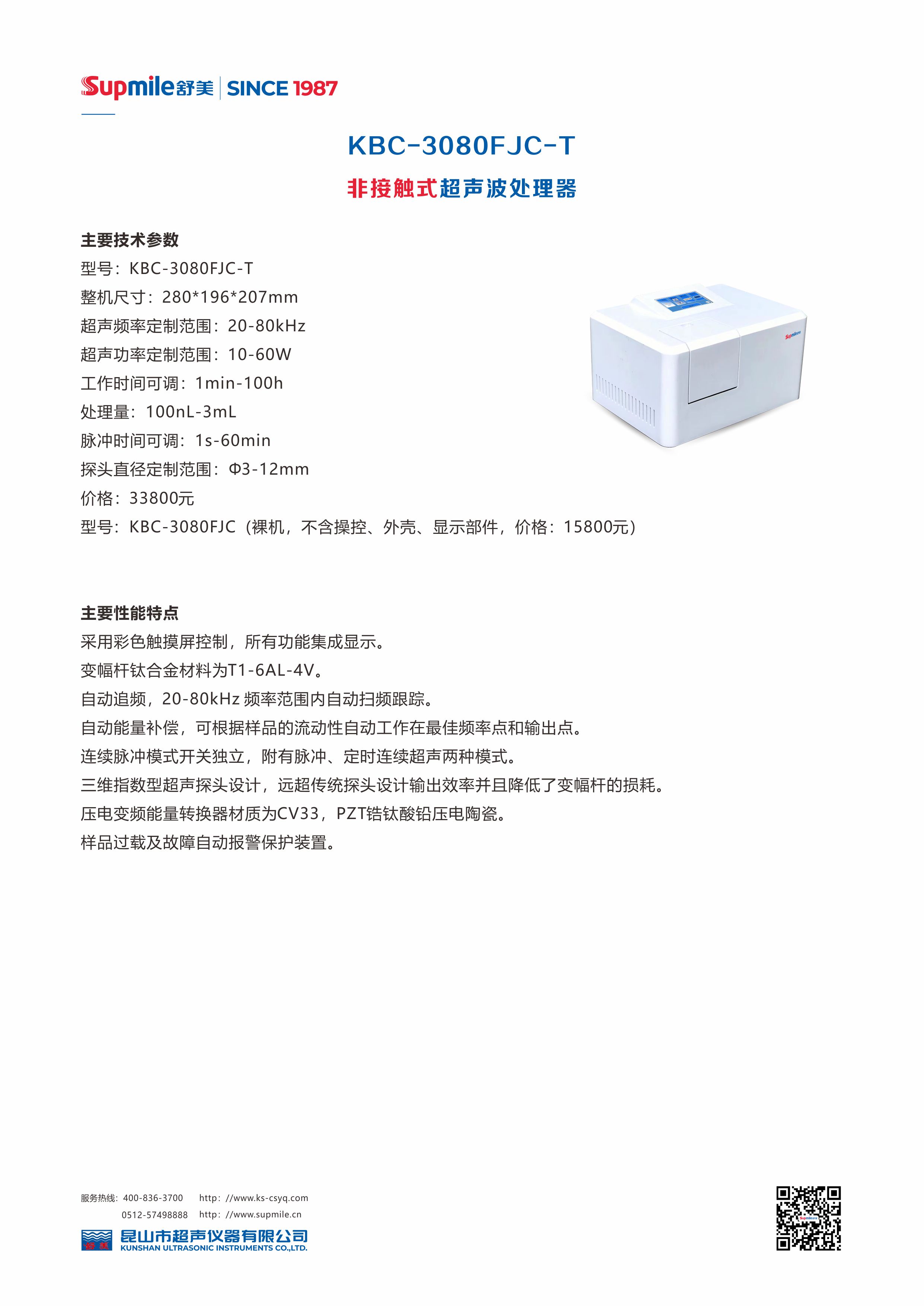 KBC-3080FJC型超聲波樣本處理器主要應(yīng)用于小劑量樣本處理,如體外診斷領(lǐng)域中 對樣本的混勻、破碎、分散oni等。